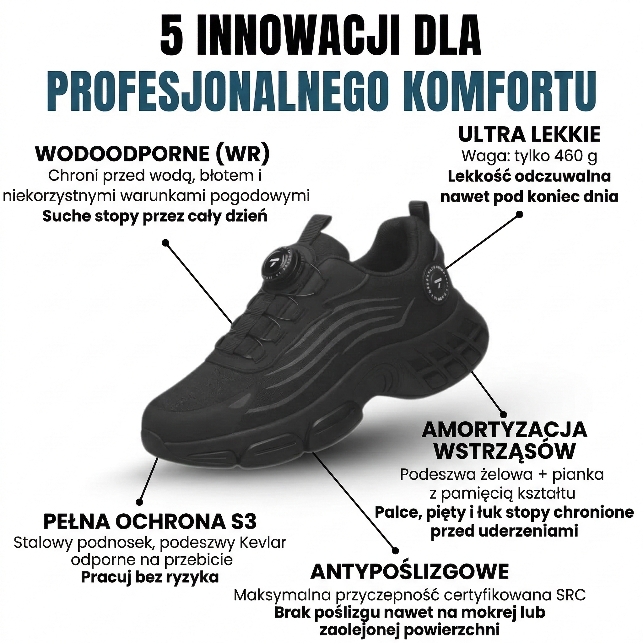 Koniec z brzydkimi butami ochronnymi, które męczą stopy już w południe.