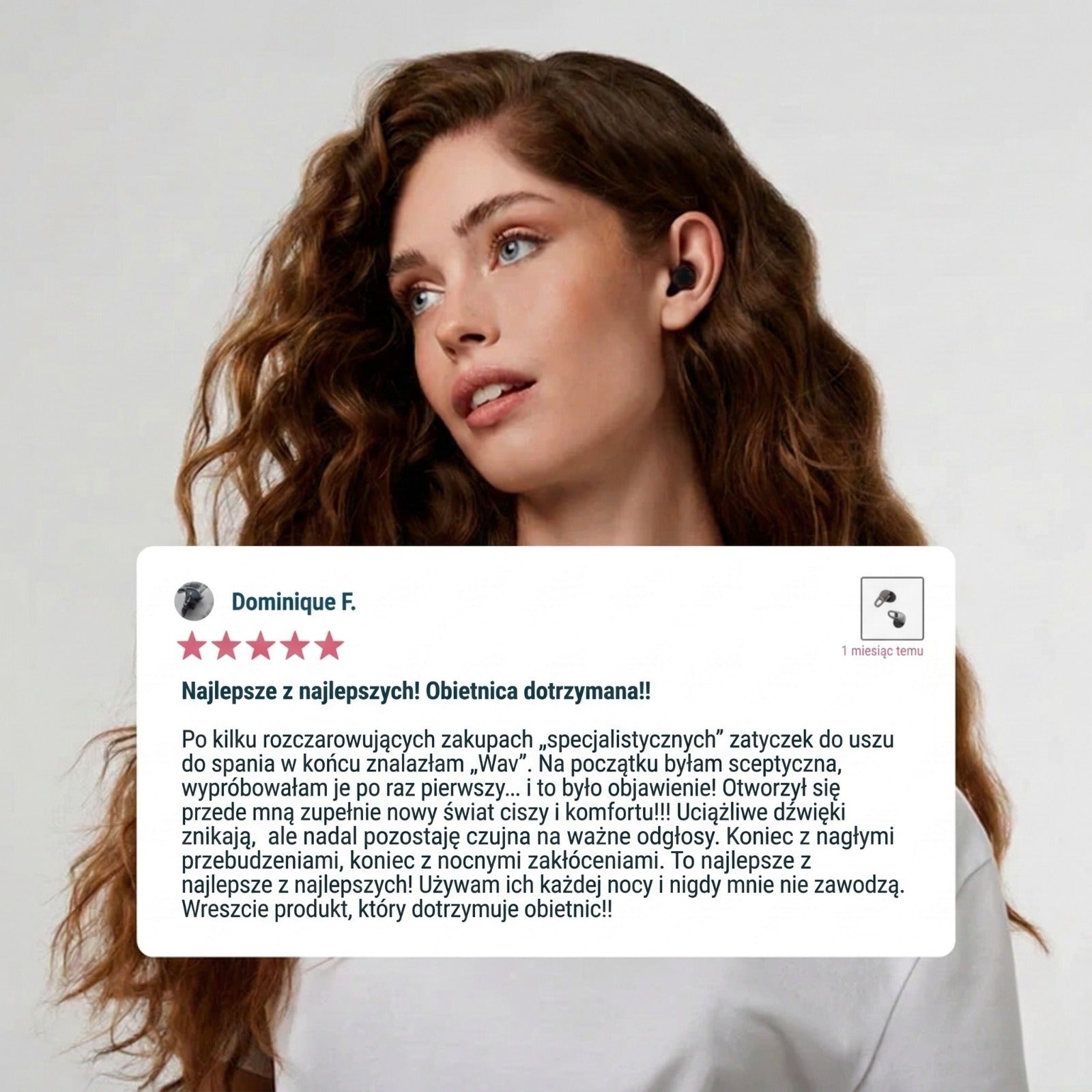 30 nocy. Bez ryzyka. Jeśli nie śpisz lepiej — zwracamy każdy grosz. Bez formularzy. Bez pytań. Bez dramatu. Bo jesteśmy pewni, że już nigdy nie wrócisz do starych zatyczek.