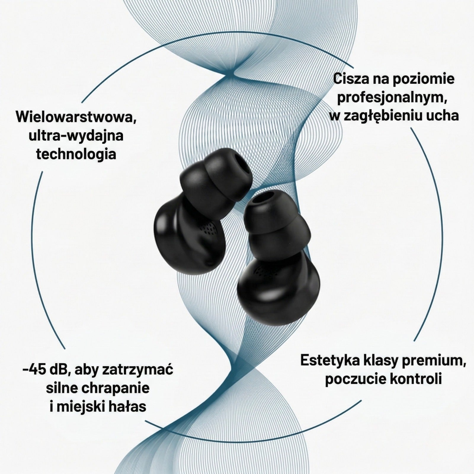 Blokują dokładnie to, co nie pozwala Ci spać — chrapanie. Budzik słyszysz. Resztę świata — już nie